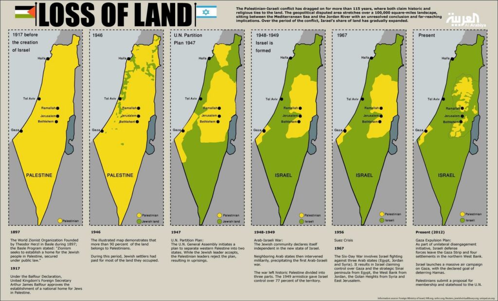 Maps of the region illustrate a devastating loss of Palestinian land. Since 2012, settlement expansion has accelerated; today, over 350 illegal settlements and outposts house more than 700,000 Israelis on stolen land according to international law.